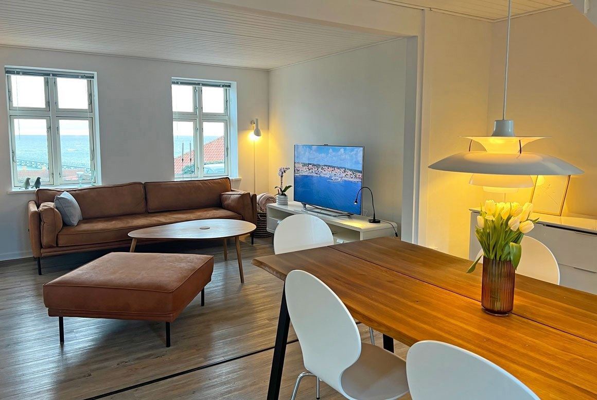 Denne røde villa på 126 kvadratmeter, beliggende kun 100 meter fra det funklende Østersøen, er en perle for enhver, der værdsætter plads og komfort. Med i alt otte sovepladser, herunder et charmerende anneks, tilbyder Arnager Seaview rigelig plads til både familier og par, der rejser sammen. Hjertet af hjemmet er det stilfulde køkken, der ligger i åben forbindelse med spisestue og stue. Her kan du samles med dine kære, nyde et måltid eller slappe af, mens du tager den flotte havudsigt ind. Den isolerede udestue tilbyder en endnu mere spektakulær udsigt, der indfanger byens charme og Arnager broens majestætiske fremtoning. Udenfor venter to terrasser, der byder på flotte kig over havet. Området byder på unikke oplevelser, lige fra kulturelle udflugter til rundkirker til smukke vandrestier langs kysten. Arnager Seaview - Oplysninger om sommerhuset * Antal kvadratmeter og plan: 126 m2 i to plan (stueplan + 1. sal) + et anneks. * Antal soveværelser: Tre soveværelser, heraf to værelse med to senge, og et værelse med halvandenmandsseng. Derudover er der et anneks med to senge. * Antal badeværelser: Et badeværelse og et separat toilet. * Hårde hvidevarer: Komfur, køleskab med fryser og opvaskemaskine. * Internet: Ja, der er trådløst internet i feriehuset. * Køkkenudstyr: Køkkenet er veludstyret med blandt andet køkkenservice, elkedel og kaffemaskine. * Opvarmning: Der er varmepumpe i sommerhuset. * TV: Der er TV i sommerhuset. * Husdyr: Husdyr er ikke tilladt i dette sommerhus. * Afstand til havet: 100 meter i fugleflugtslinje eller 2 minutters gang. * Afstand til indkøb: 6,5 kilometer (Netto eller Coop365 i Rønne). * Ankomst- og afrejsetidspunkt: Du kan komme ind i feriehuset fra klokken 15:00 på ankomstdagen. På afrejsedagen beder vi dig forlade feriehuset senest klokken 10:00, således at vi kan få huset rengjort til de næste gæster. * Ankomstdag: I perioden 23. juni - 1. september er lørdag ankomst-/afrejsedag. I øvrige perioder kan du som udgangspunkt frit vælge ankomstdag på ugen. I nogle perioder kan der af hensyn til de øvrige bookinger på Arnager Seaview dog være begrænsninger på valg af ankomstdag. Du behøver som udgangspunkt heller ikke leje for hele uger. Det giver dig mulighed for at sammensætte ferien helt efter dit valg, ligesom du kan vælge at rejse på de billigste færgedage. De billigste færgedage er som regel mandage, tirsdage, onsdage og torsdage. * Rengøring samt vand- og elforbrug: Såvel rengøring ved ankomst og afrejse som vand- og elforbrug er inkluderet i din lejepris.
