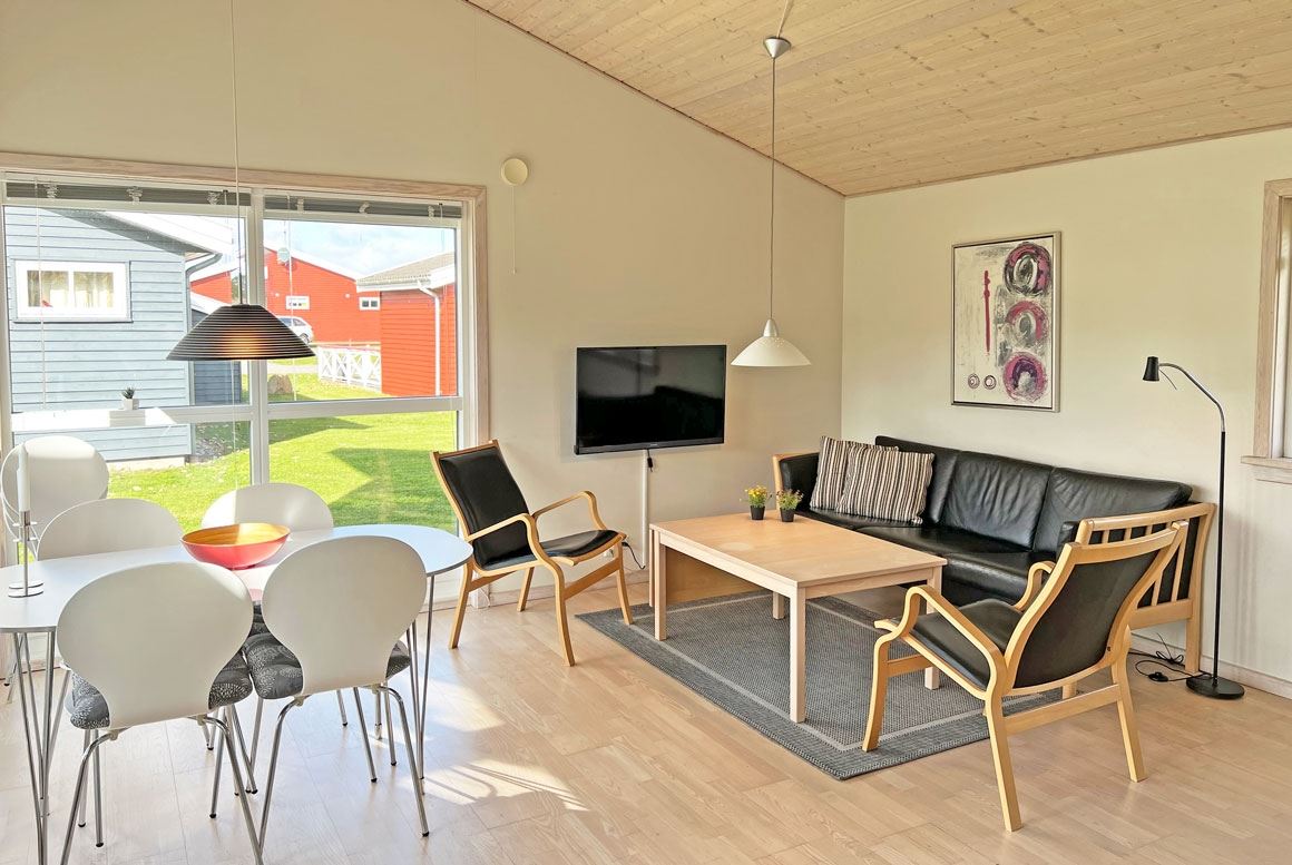 Rø Golfhuse is located in one of Bornholm's most scenic areas, where spruce and deciduous forests meet dramatic rocky coasts and open landscapes. Here you stay right next to Rø Golf Course, which with its two 18-hole courses is among Denmark's best. If you are interested in golf, you can easily take a round - but the area also offers beautiful cycling routes, hiking trails and sights such as Rø Plantage, Borgedalssøen and the impressive Helligdomsklipper. The bright holiday homes can accommodate 2-6 people and are furnished with a separate bedroom, a cosy loft for children and an annex with extra beds – ideal for couples, families or groups of friends who want a little extra privacy during their holiday. After the day's experiences, you can relax on the terrace with a view of the green common areas while the sun sets over the area. With its central location on North Bornholm, it is a short drive to charming port towns such as Gudhjem and Allinge, and you have easy access to both the island's natural gems, cultural offerings and restaurants. Rø Golfhuse are an obvious choice for those who want to combine tranquility, nature experiences and good excursion opportunities. Note: Rø Golfhuse offers holiday homes where pets are allowed. If you want to bring pets, please remember to indicate this when you book your stay. You may find that houses where pets are allowed are sold out - even if there are generally houses available. If this is the case for your booking, we will always contact you immediately after your booking.