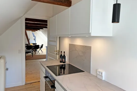 Newly renovated apartment on the 1st floor. Beautiful wooden beams. Directly at Svaneke Town Square (Svaneke Torv)